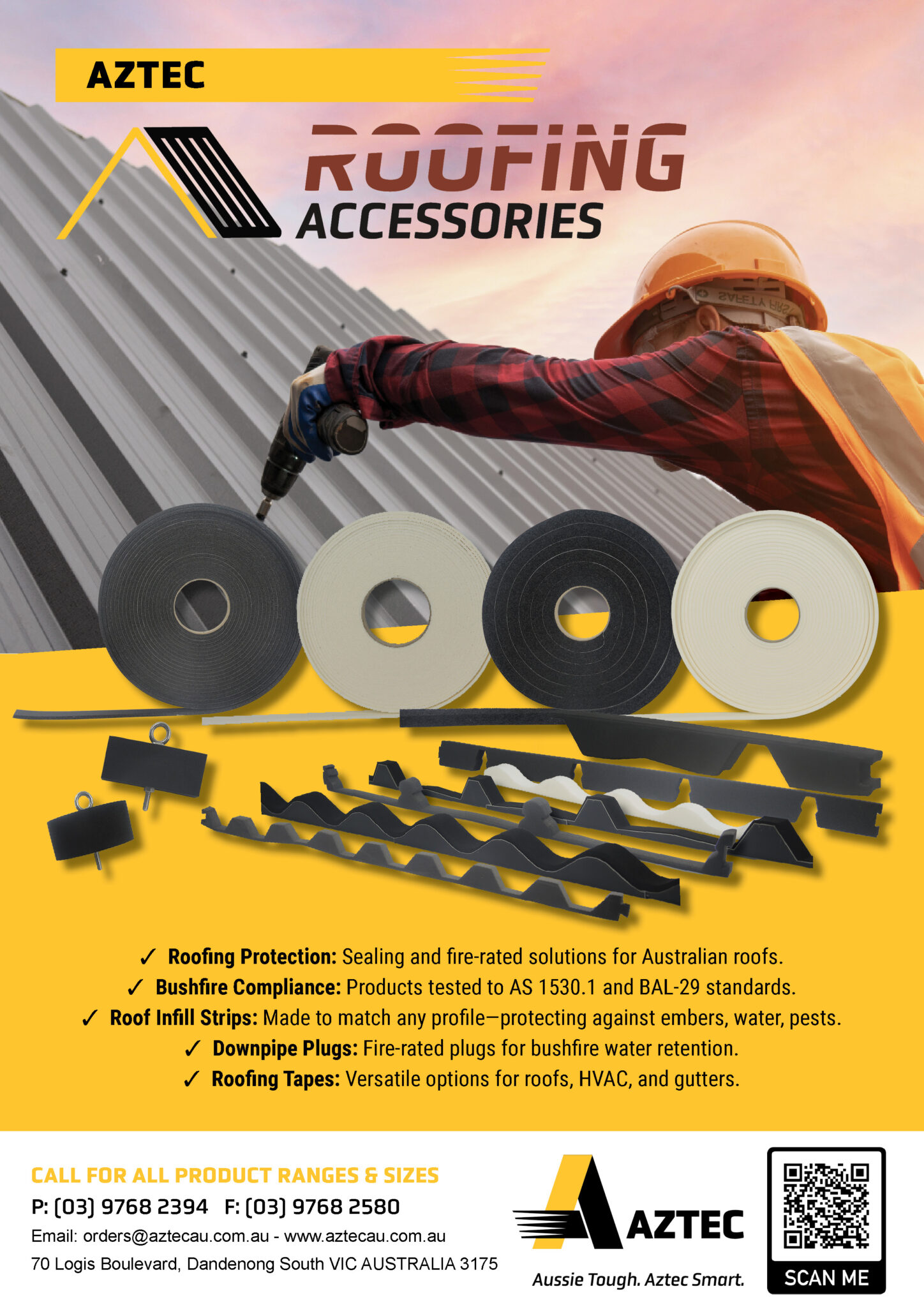 - Bushfire Protection: BAL tapes for vents, wall-roof gaps and flashings
