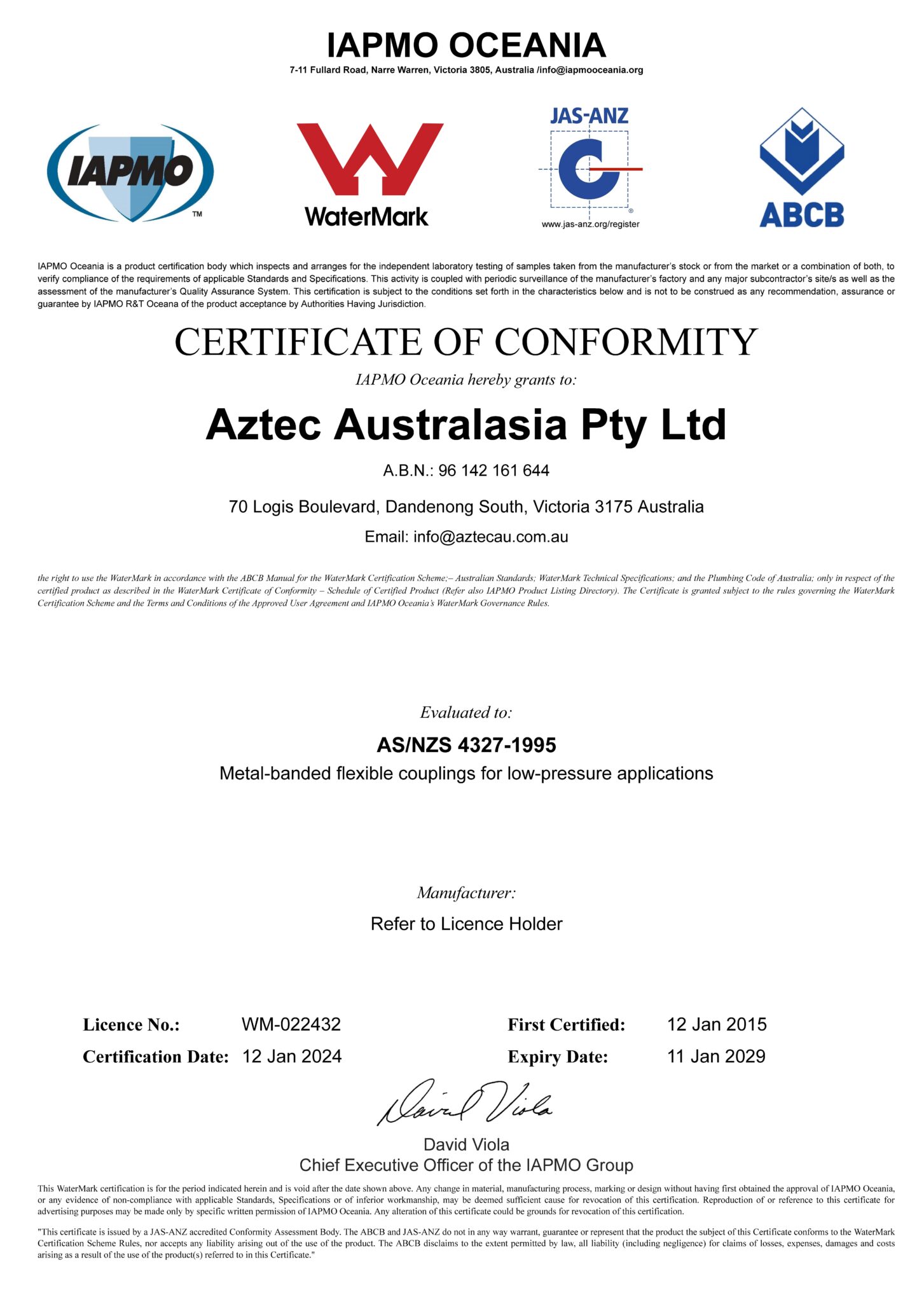 Australian standard certifications are a very high priority at Aztec Australasia, we continuously monitor the Australian standards to ensure we have you covered with quality products for all your installs.